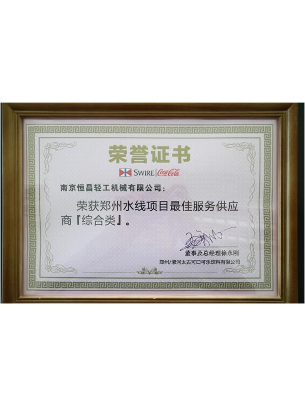 南京恒昌包裝作為后段整包商,在江蘇太古可口可樂48000bph水線項目中獲得“最佳合作伙伴”殊榮!